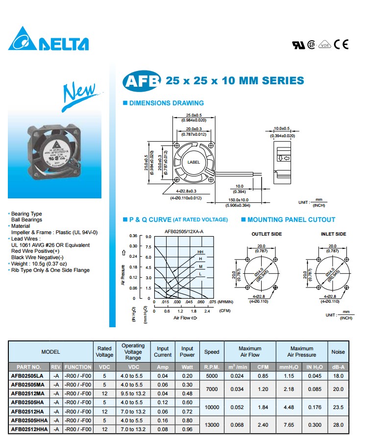 预计寿命 : 25 °C时L10预计寿命40000小时