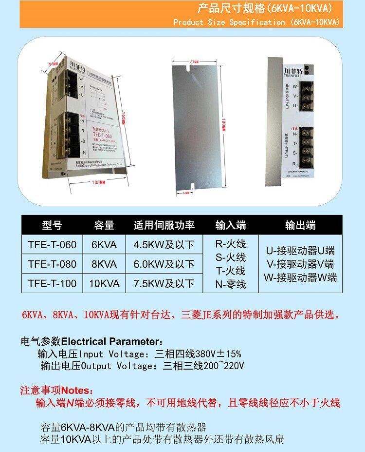 二、TFE-T-080型8KVA三相伺服专用电子变压器产品选型示意