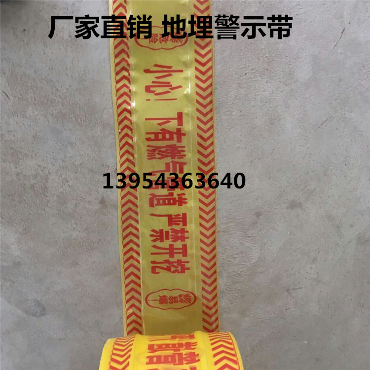 我公司专业生产各种地埋警示带,PE地埋警示带,PVC编织布地埋警示带,电力电缆警示带,燃气管道警示带,热力管线警示带,输油管道警示带,国防光缆警示带,铝箔警示带,金属丝警示带,探测警示带,价格低,质量优,出货快 欢迎订购!