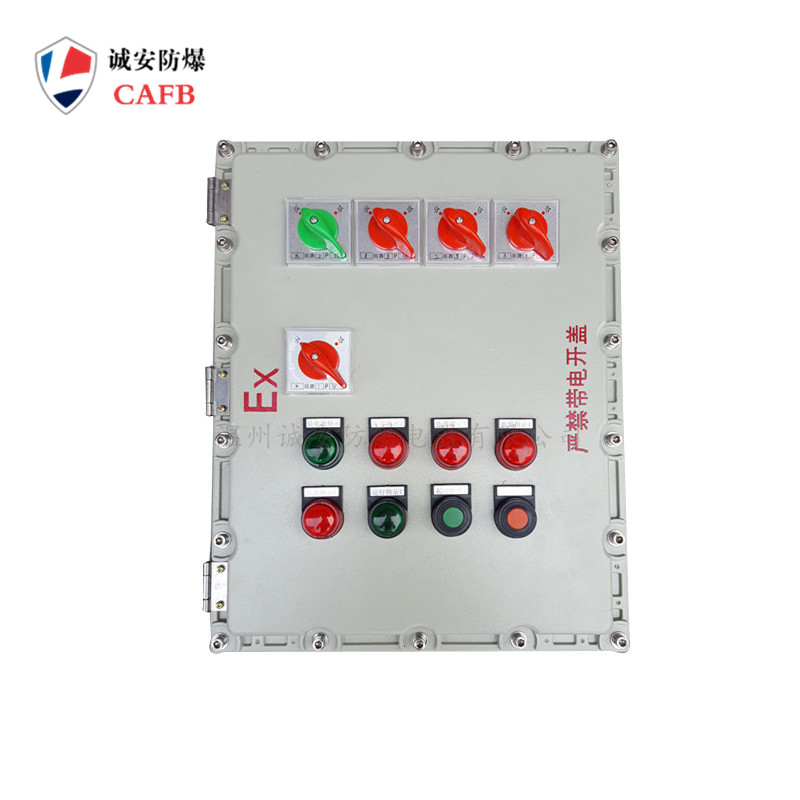 防爆箱它所要电器元件是装在箱子里面的,然后通过操作机构引到面板上操作,需要通过手柄操作开关,面板上的信号灯和开关是防爆元件是可以露在空气中。