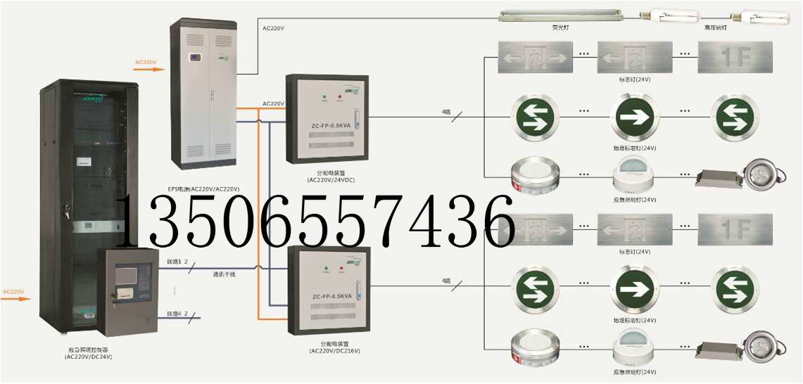 3、一台分配电装置具有4个灯具回路,每个灯具回路可配接127只集中控制型消防应急灯具,所以一台分配电装置的最大容量为127×4=508点,一台控制器最大可控制灯具数量为16×4×508=32512只。