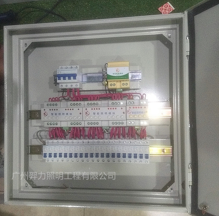 内置材料:8路智能照明控制模块,型号YL-MR0816A/Y 两台