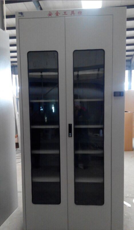 (2)箱体表面腐静电喷涂工艺,颜色驼灰皱,门配有透明有机玻璃身体的各种电力安全工具柜和手段,有序的分类,透过玻璃门可以看到。