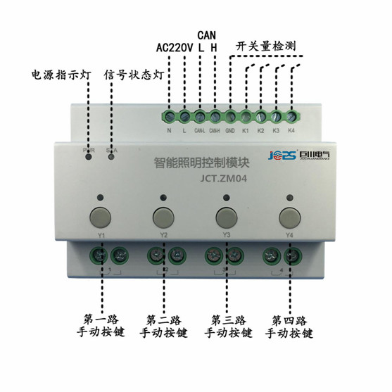智能照明模块直接接负载而不用接触器,驱动模块采用标准的35mmDIN导轨安装在照明配电箱内的微型断路器下方,接线简单,结构明了。现场可配置传感设备,如智能面板、人体移动感应器、光线感应器等,所有传感设备只需要一根总线连接起来,施工简单、使用方便、安全,传统的面板开关也就不用安装了,节省了大量的材料成本和施工维护成本。