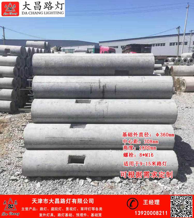 7   本厂生产的路灯基础适合2米至20米路灯、庭院灯、太阳灯、景观灯使用。