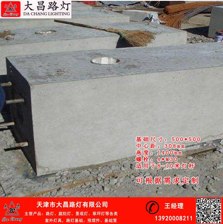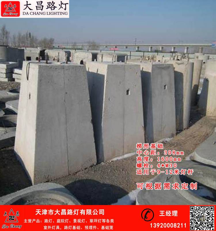 7   本厂生产的路灯基础适合2米至20米路灯、庭院灯、太阳灯、景观灯使用。