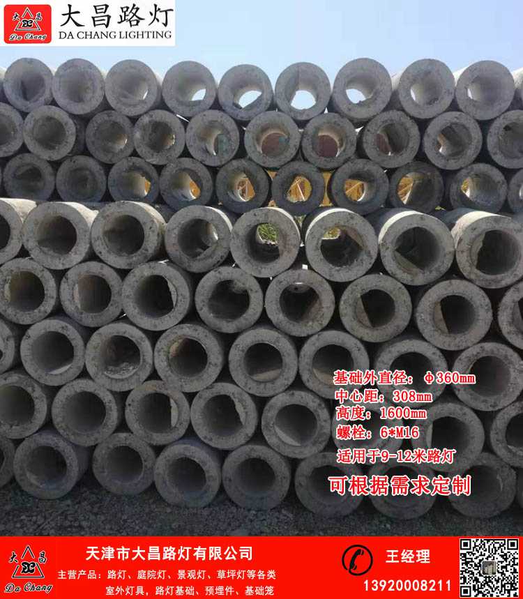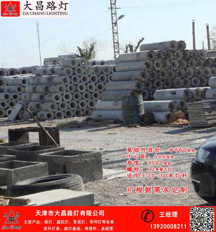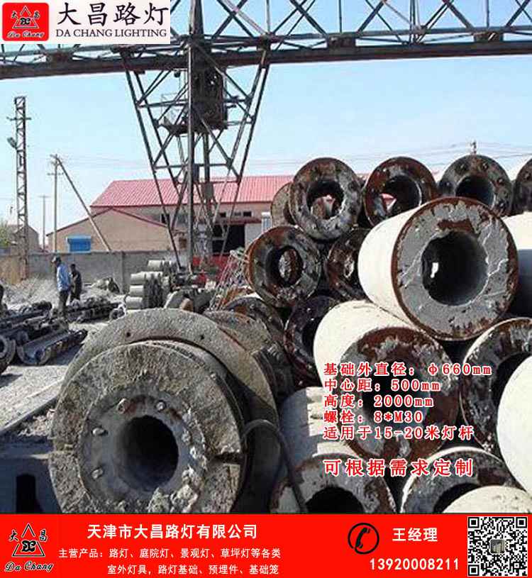 7   本厂生产的路灯基础适合2米至20米路灯、庭院灯、太阳灯、景观灯使用。