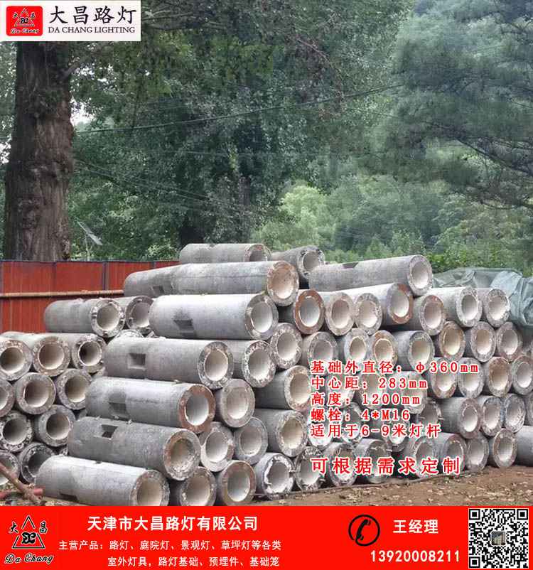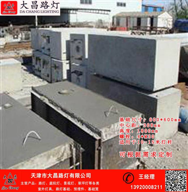 7   本厂生产的路灯基础适合2米至20米路灯、庭院灯、太阳灯、景观灯使用。