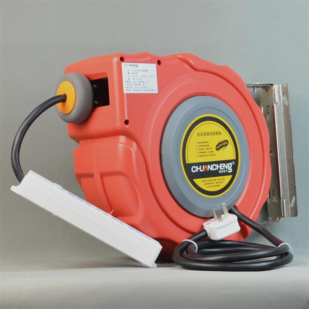 自动伸缩电缆盘输入端即插头部分无自动伸缩回收功能可燃外接220V电源;自动伸缩电缆输出端的电源线具有伸缩功能,有自锁装置、可自动排线,当电缆线拉出一段之后,自动伸缩电缆盘的自锁装置开始工作,电源线被定为不动,收回电缆线时需再向外拉出一段电缆线,让电缆迈过自锁装置,其松开电缆线立刻自动缩回。自动伸缩电缆电气参数:输入电压:220V、380V