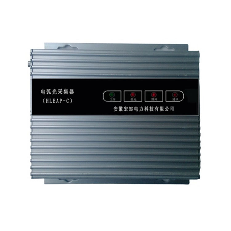 弧光采集器安装在开关柜二次室内继电器网上,每台采集器可测量8路弧光,设置2继电器出口,2路开关量输入;弧光采集器采集到故障信号通过通讯接口传回主机,由主机做出判断是否发出跳闸指令。