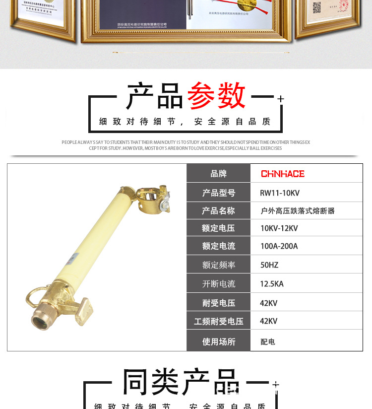 公司主营生产及销售:穿墙套管、熔断器、跌落式熔断器、绝缘子、避雷器、隔离开关、负荷开关、接地开关、户内(外)高压真空断路器、互感器等高压电器及附件。