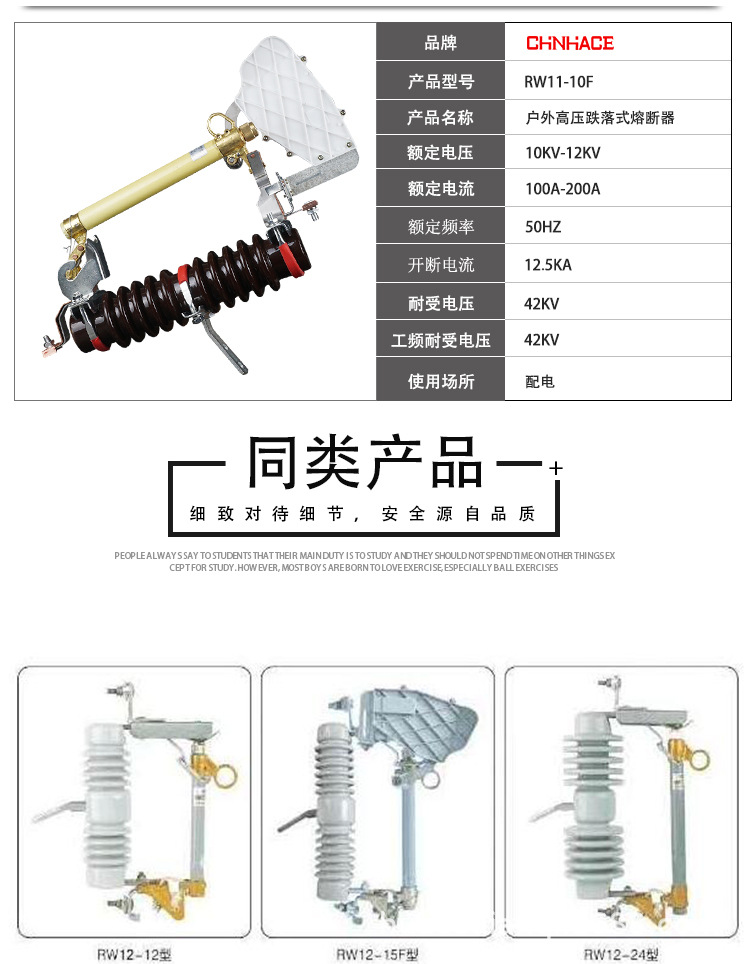 公司主营生产及销售:穿墙套管、熔断器、跌落式熔断器、绝缘子、避雷器、隔离开关、负荷开关、接地开关、户内(外)高压真空断路器、互感器等高压电器及附件。