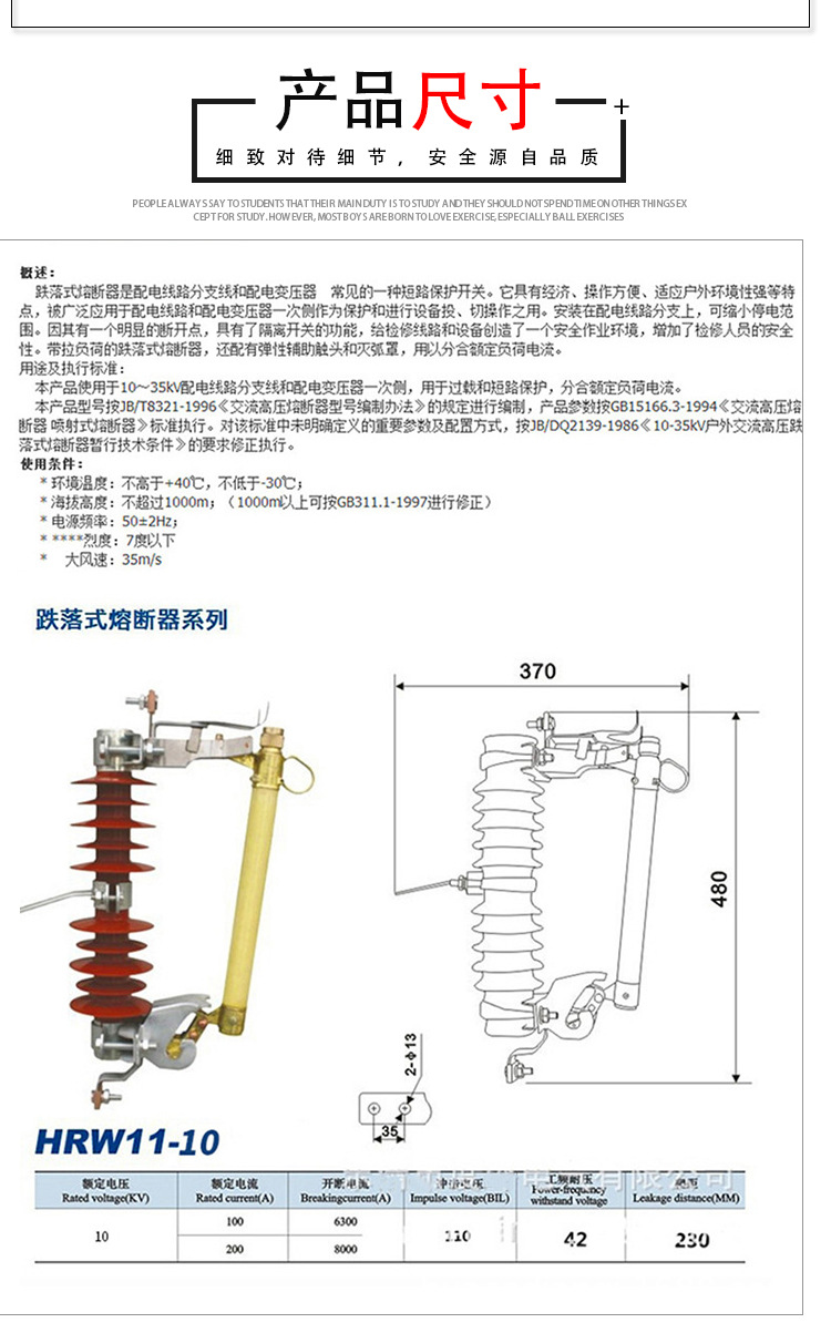 跌落式熔断器及拉负荷跌落式熔断器是户外高压保护电器。它装置在配电变压器高压侧或配电线支干线路上,用作变压器和线路的短路、过载保护及分、合负荷电流。