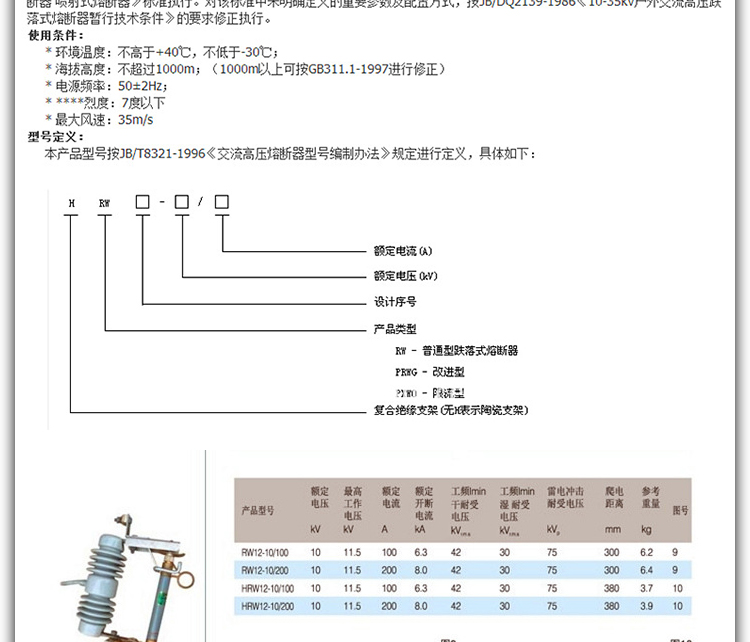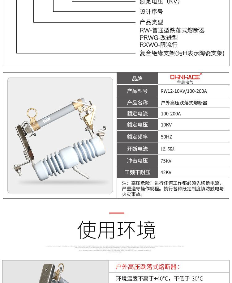 华册RW12-10KV陶瓷高压跌落式熔断器100A-200A