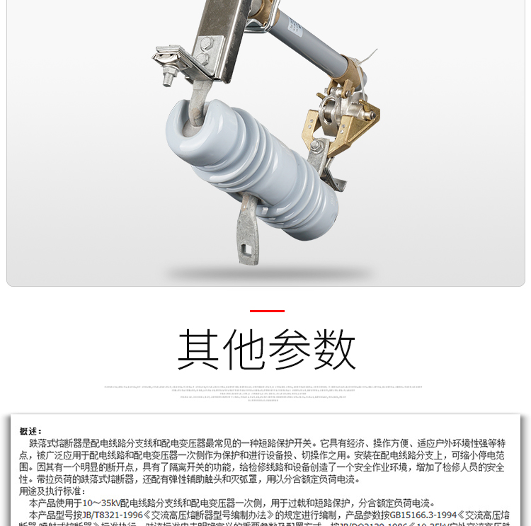 跌落式熔断器及拉负荷跌落式熔断器是户外高压保护电器。它装置在配电变压器高压侧或配电线支干线路上,用作变压器和线路的短路、过载保护及分、合负荷电流。