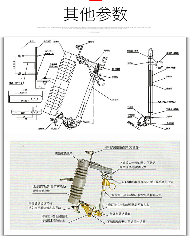 跌落式熔断器及拉负荷跌落式熔断器是户外高压保护电器。它装置在配电变压器高压侧或配电线支干线路上,用作变压器和线路的短路、过载保护及分、合负荷电流。