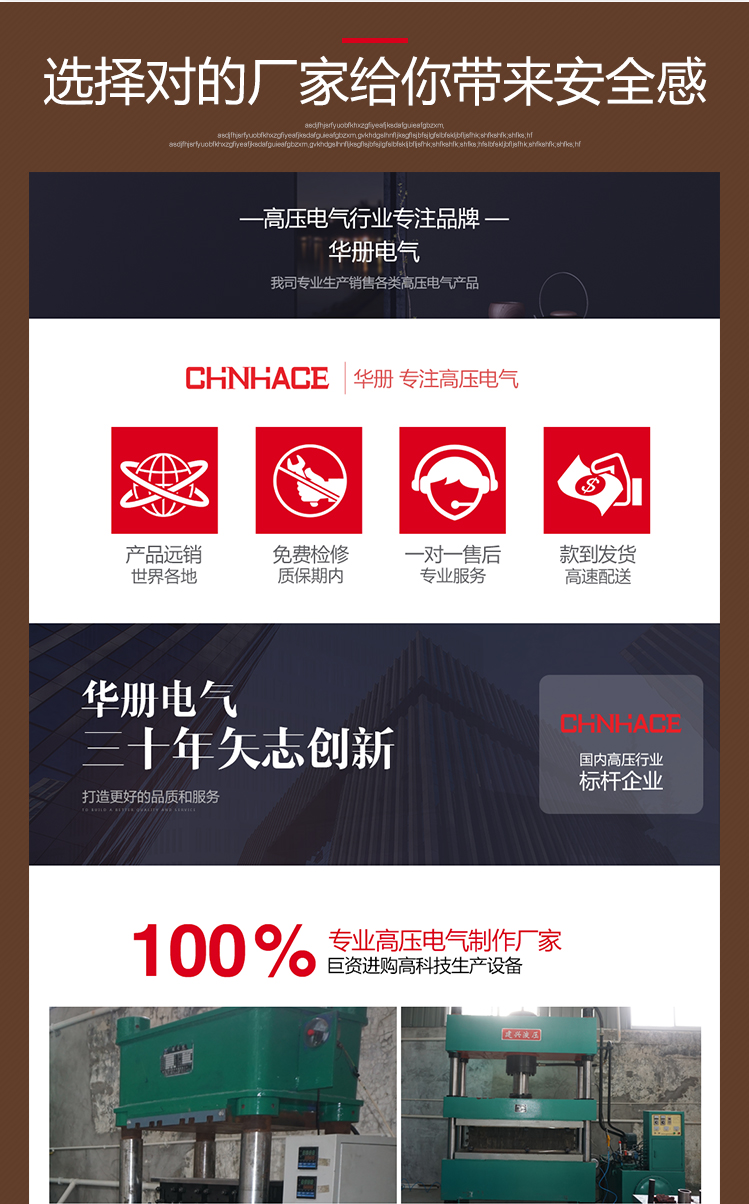 上海华册电气有限公司是一家专注于高压输配电领域的高压配套产品生产商。多年来本公司不断进行研制、开发、改进和创新各种电气产品。