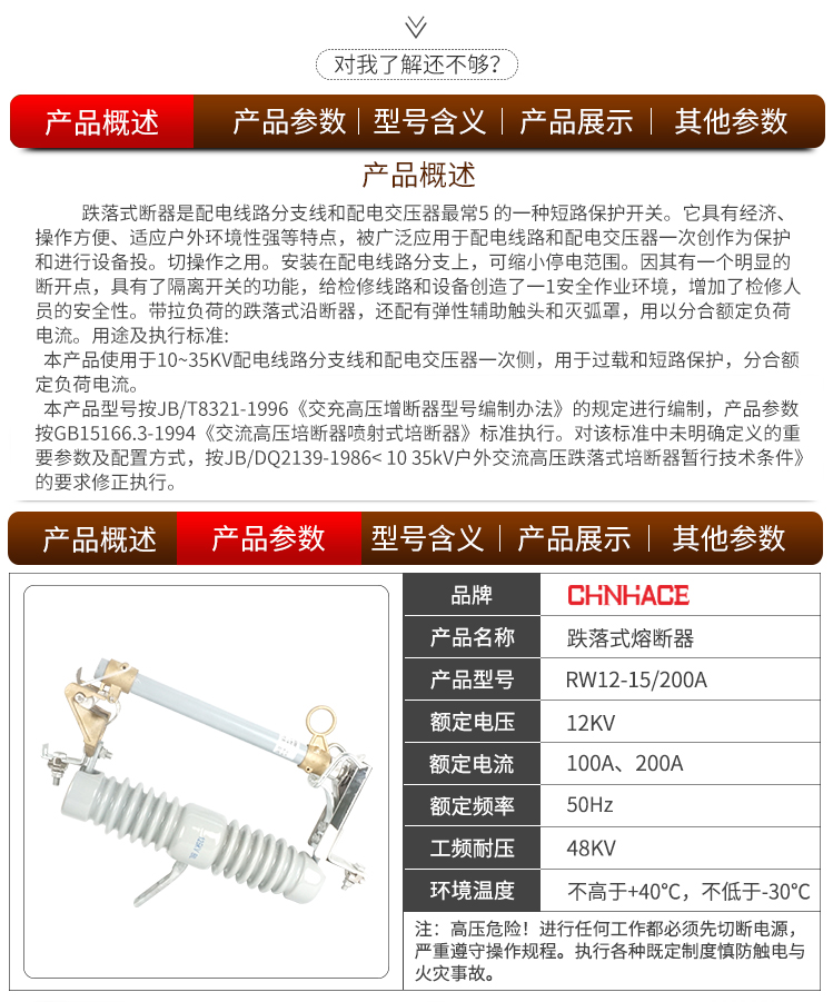 华册RW12-15KV陶瓷高压跌落式熔断器100A-200A
