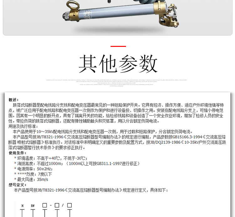 跌落式熔断器及拉负荷跌落式熔断器是户外高压保护电器。它装置在配电变压器高压侧或配电线支干线路上,用作变压器和线路的短路、过载保护及分、合负荷电流。