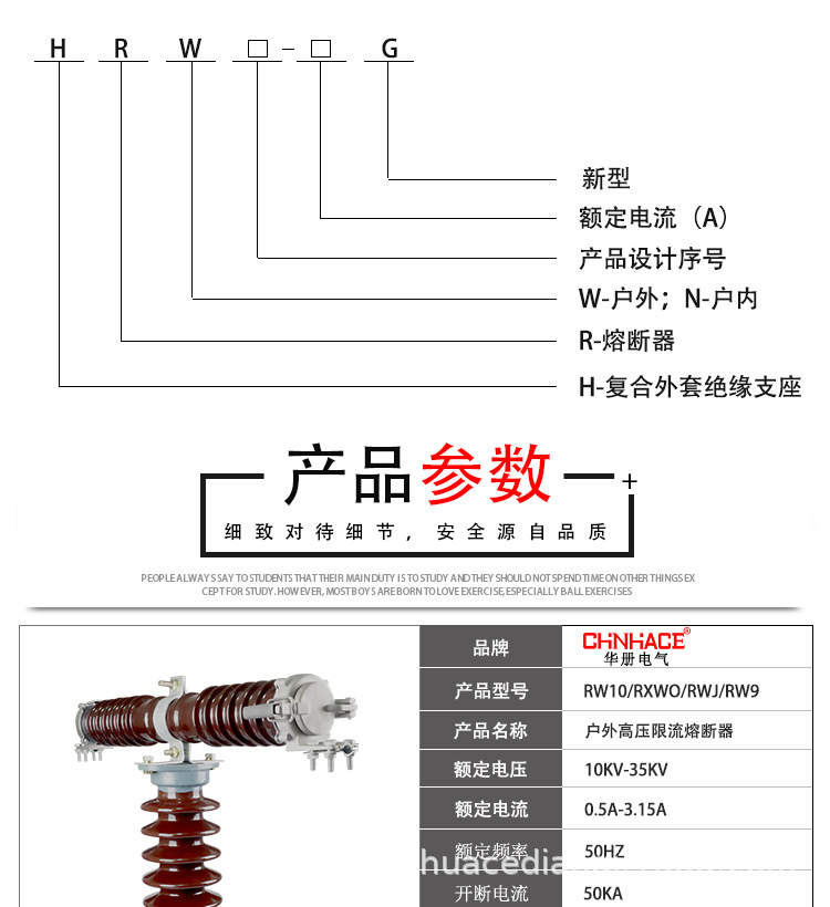 上海华册电气有限公司是一家专注于高压输配电领域的高压配套产品生产商。多年来本公司不断进行研制、开发、改进和创新各种电气产品。