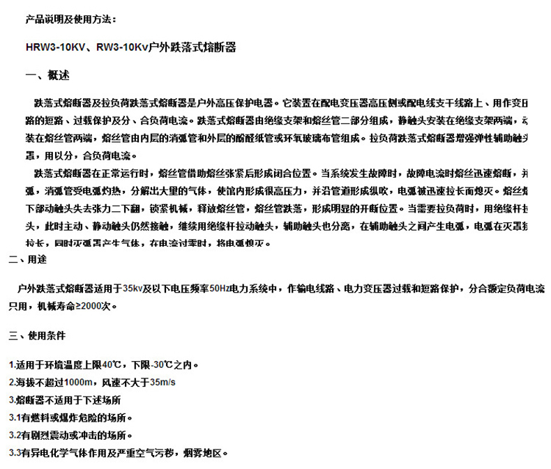 跌落式熔断器及拉负荷跌落式熔断器是户外高压保护电器。它装置在配电变压器高压侧或配电线支干线路上,用作变压器和线路的短路、过载保护及分、合负荷电流。