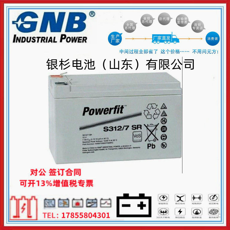 美国GNB蓄电池Powerfit S312/7 S 免维护12V7.2AH 密封阀控式电源