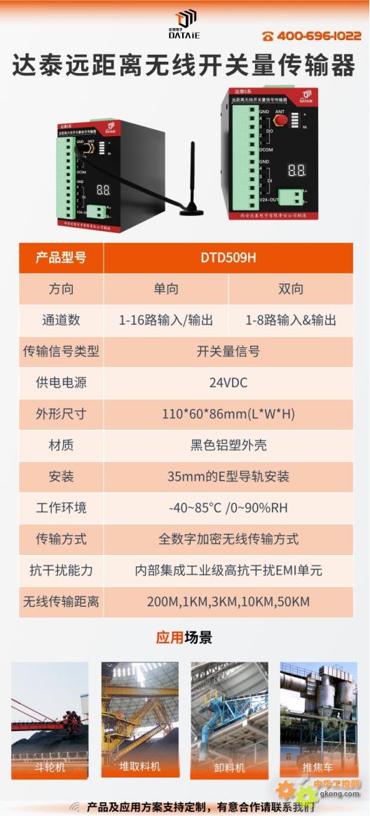达泰提供多种型号的开关量转无线模块,以满足不同客户的需求。以下是一些常见型号的规格参数: