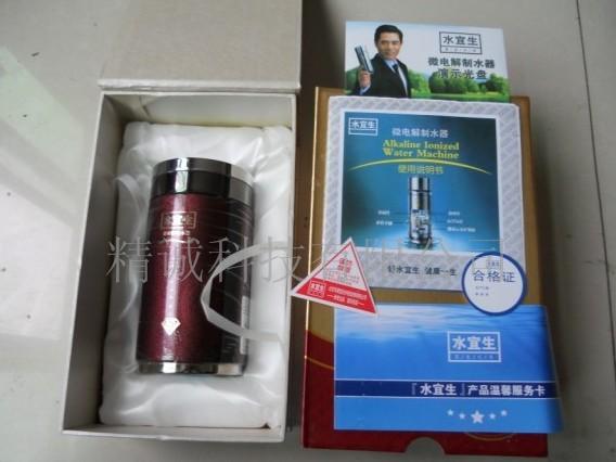 极品系列:V608 杯体材质:高级不锈钢 外观材质:纳米材料 高:178 mm 直径:64 mm 重量:377.5g 宜生极品系列V608,专为重大商务馈赠、高端人士交往、接见重要领导精心打造。杯身采用深红的腾飞龙纹,寓含事业红火飞黄腾达之意,体现馈赠之下传情达意的情怀;特镶嵌高贵钻石,采用鎏金打造标识,高贵品味,时尚典雅;高科技环保材料,更亲合、更恒久,随身携带十几年依然光亮如新,是值得托付一生的健康极品。 ☆ 耐强压、超强耐磨,长期使用,光洁如新; ☆ 通体龙形底纹饰面、精钻镶嵌,凸显王者风范; ☆ 博士头像防伪、鎏金标识,与众不同,高人一等。 水宜生权威认证 科博会上水宜生荣获《优秀新材料技术应用》金奖 水宜生荣获中国消费者满意名特优产品 水宜生超能活水的特点: 水宜生能量水杯仅需一分钟就可以制造出弱碱性、负电位、小分子团、高含氧量、负离子、含适量矿物质和微量元素的健康饮用弱碱性水,完全符合世界卫生组织(WHO)公布的健康好水的各项标准。 更重要的是“水宜生”无需安装、无需通电、可以随身携带,让普通人随时随地喝到健康好水,改善酸性体质和亚健康状态,让饮水养生成为可能。 弱碱性: 烟酒、大鱼大肉都是酸性食物,很容易在体内形成酸性残留,常饮弱碱性水能迅速中和体内酸性废物,调节酸碱平衡,保持身体健康状态。 小分子团: 具有很强的渗透力和溶解力,改善细胞微循环,促进细胞新陈代谢,排除过多的脂肪酸和胆固醇,平稳血压,清肠通便,加速体内排泄;同时小分子团水有很强的乳化作用,有助于迅速分解过多油脂,达到瘦身减肥的目的。 负电位: 具有极强的还原性,清除体内过剩的自由基,保健美容,延缓衰老。 高含氧量: 提供人体细胞所需氧气和养份,活化细胞,增强自然自愈力,增强免疫力。 矿物质和微量元素: 比例适当,便于人体吸收,促进人体健康。 负离子: 杀灭体液中的病毒和细菌,净化血液,消除疲劳,调节肠胃系统。 喝对水,能够瘦身、解酒、降血压 喝水能瘦身?喝水能解酒?喝水还能降血压?其实早已不是天方夜谭,也不算什么新鲜事物。早在70年代,日本就已经开始了用电解水器制造弱碱性水进行防病养生的研究;电解水器早已成为欧美日韩等国家现代家庭必备的健康用品。 科学家研究表明:长期饮用弱碱性、小分子团、负电位的健康好水不但能够中和烟酒鱼肉产生的酸性废物、消脂排毒、改善酸性体质、延缓衰老,而且还对痛风、便秘、原发性高血压、高血脂、糖尿病等多种疾病有着良好的预防和控制作用。众所周知,日本已经成为全世界人均寿命最长的国家之一。 媒体报道 2006年11月,中央电视台“科技之光”栏目专题报道了杨博士和他的水宜生微电解制水器,引起各方媒体的争相报道和广泛关注。 2007年10月,河南电视台专程直播了杨博士和他的“水宜生”,当天就引起了600多人的火爆热线抢购,成为亲友之间相互馈赠佳品。 2008年1月16日,杨博士和“水宜生”再度走进中央电视台“走进科学”栏目,向全国亿万观众现场展示了“水宜生”解酒解烟、去脂排油、延缓衰老的神奇功效和奥秘! 自水宜生问世以来,在社会上引起了强烈反响,中央电视台、《科技之光》、《走近科学》、省市报纸、网络等媒体纷纷大篇幅报道。 在短短几个月的时间里,水宜生总部收到了几千封来自全国各地热情洋溢的感谢信函,信中很多消费者大都称,饮用水宜生微电解制水器制出的宜生活性水解决了他们多年的便秘、痛风等困扰。 年节将至,送礼送健康 快过年了,客户请客,朋友聚会,大鱼大肉、抽烟喝酒难以避免;人到中年,拼搏多年,小毛小病总是一堆;爸妈辛苦一辈子,儿女不能常伺候在身边,但父母健康长寿是所有儿女们的心愿。 “水质决定体质,体质决定健康”,为操劳一辈子的爸爸妈妈;为忙于应酬饱受烟酒伤害的家人朋友;为领导、为同事、为自己,送上“水宜生”、送上健康、送上最诚挚的心意!让“水宜生”带给您一生的健康和幸福!