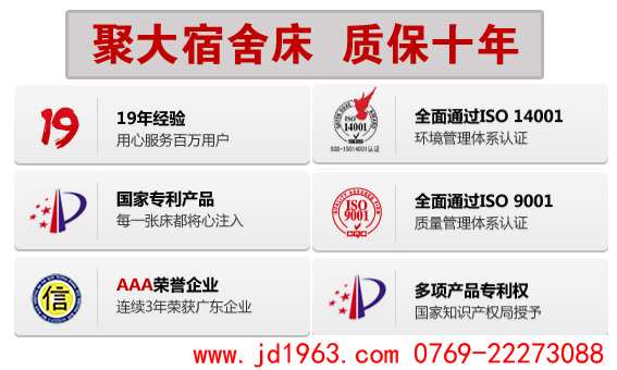 8、聚大:双层铁床宿舍床(学生床)部份焊接采用二氧化碳保护焊接,铁板表面经除油,去锈,磷化静电喷粉.高温固化而成。整张宿舍床连接部份采用挂件连接,不用螺丝连接。