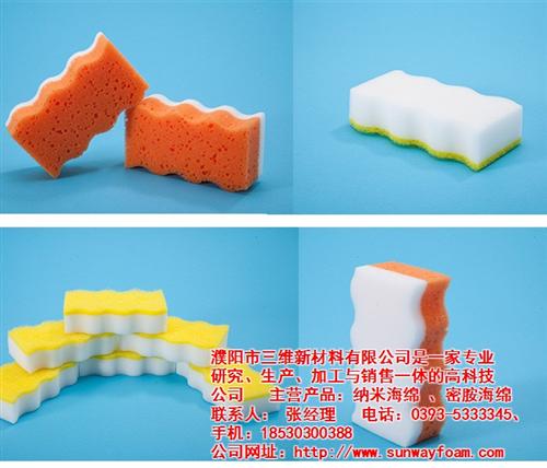 高密度纳米海绵,原材料为蜜胺泡绵,经过特殊工艺加工后,使其密度比普通纳米海绵的密度要高出很多,产品密度可达到17kg/m3,第四代产品。在提高密度的同时,也提高了纳米泡绵材料的物理特性,弥补了普通纳米泡绵易裂、易掉渣、磨损快的固有缺陷。其代表产品有墙壁清、茶垢净、汽车清洗海绵、涂鸦擦擦等。