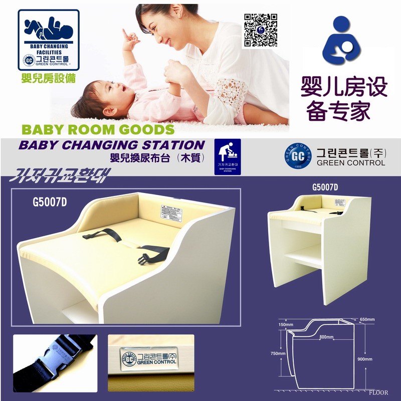 用于公共场所母婴室,哺乳室。将婴儿的头部朝内,平躺在平台上,系上安全扣,进行换尿布台和整理衣服。