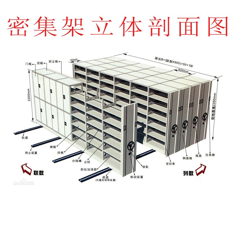 6、底架组为分段组合式的,加工精度高、具有对接互换性,节型号范围宽,便于运输安装。7、宽度为650mm以上的密集架,采用三根立柱,保持了架体的钢度。