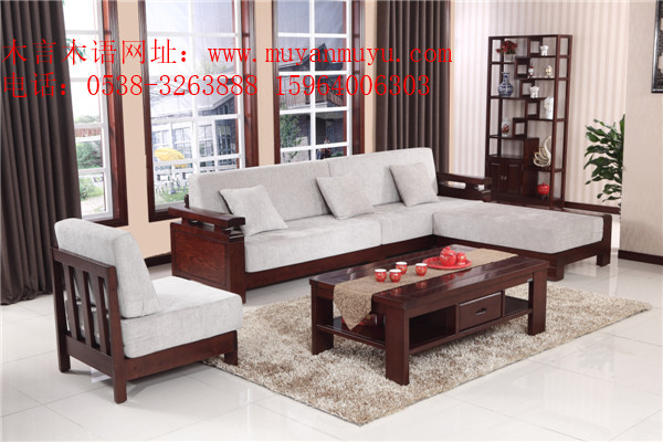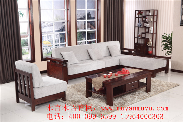 烟台木言木语黄菠萝木定做别墅家具 高端实木转角沙发