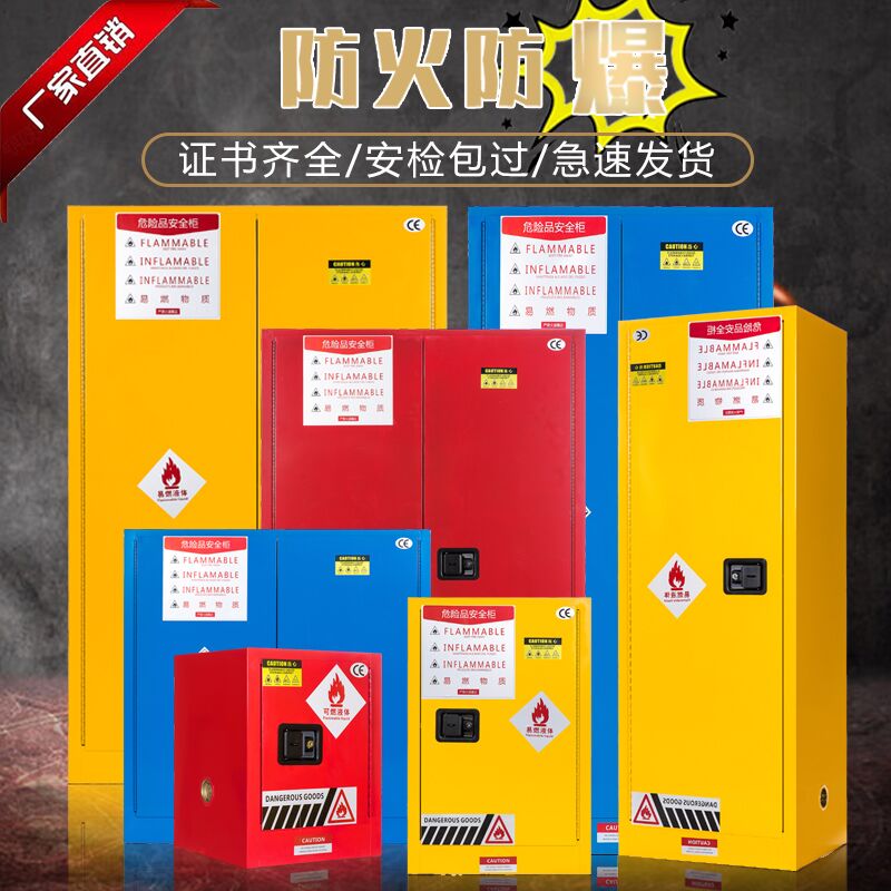 各种不同尺寸的防火安全柜能为您可燃、易燃液体及化学品提供安全储存。体积小巧的化学品储存柜,能够摆放在您工作场所存放可燃、易燃品及有机容剂,省去您往返危险品储藏室的麻烦。 即使在工作空间较小的地方,小型防火安全柜能为您可燃、易燃液体及化学品提供安全储存。