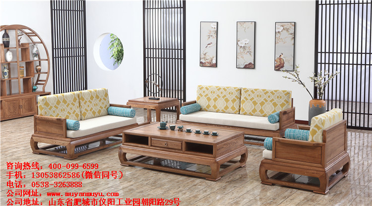 太原木言木语家具 客厅沙发 新中式实木沙发组合
