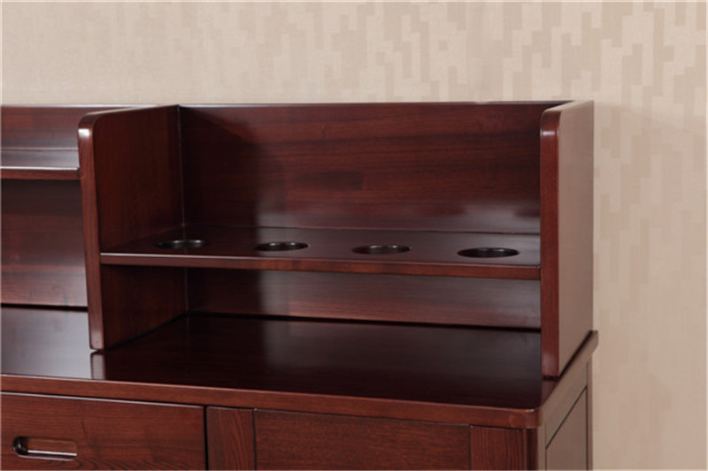 餐边柜选用东北野生黄菠萝,属濒危保护树种,又是久负盛誉的名贵中药材。黄菠萝木以野生为主,人工种植少,不易成活。且生长期长不易成材,黄菠萝木至少要二十年才可以采剥树皮黄柏,百年以上才能制作家具。黄菠萝木价格持续上涨,价值越来越高,被誉为“黄金树种”作为国内生产黄菠萝实木的家具,他们有数百名老木匠,拥有近四十年的手艺,一刀一锯一刨一创而成,每一刀都是手匠人的心思,坚持传统卯榫结构,经得起时间的洗礼。每一道程序都占用时间和人力,其中独有的四次回潮法,可以说的妙笔之法。原料从进厂,将原木锯解,先在仓库存放一年,让其自然风干以适应当地的气候,在进入烘干窑60天。然后出窑后,在放入仓库回潮至少半年以上的时间,然后做成半成品,在放置一段时间再出成品。这样做出来的黄菠萝木家具在含水率上还有木材的稳定性上就更佳突出,还经过了家具伸缩缝的处理,从各个细节上都解决了家具开裂的问题。采用先进的国内直拼技术,不添加任何辅材,让整体实木家具更加稳固,油漆采用复杂的三十二道工艺法,保证控制好漆面的同时,还能把甲醛含量降到低于规定标准。避免的掉漆和一系列的污染问题。