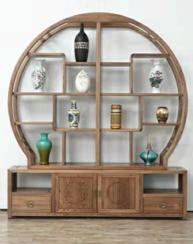 木言木语实木博古架精雕细琢,多区域存储空间,高低错落有致,艺术品和古玩摆放。十足艺术气息,复古拉手设计,简单大气华贵,整体黄菠萝木,传统卯榫,用料厚实,坚固耐用,造型简洁流畅,展示大气典雅尊贵居家品质。