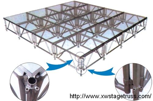 有机玻璃舞台是采用18mm厚的有机玻璃和高硬度铝合金框构