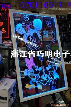 浙江东阳巧明电子科技有限公司是一家集研发 生产 销售生产LED手写荧光板、电子荧光板、手写荧光板、荧光板品批发三脚架 、LED发光礼品、LED荧光板配件等为一体的综合性企业。秉承“质量第一 用户至上 真诚务实 服务到家”的宗旨,把客户的满意始终作为我们奋斗的目标,把质量安全始终作为我们的使命。公司以先进的生产流程为依托,结合先进的互联网运营及管理模式。致力于为消费者提供款式新颖 做工精良的LED系列产品一站式服务 结合利用互联网降低运营成本及减少中间逐渐批渠道的双重优势。为合作伙伴提供品质优良和极具价格优势的产品,实质性的实现与合作伙伴的共赢,为合作双方长期稳定的发展打下结实基础。因公司对产品质量的严格控制。新颖潮流的设计风格 环保节能的产品理念 受到广大客户的一致认同