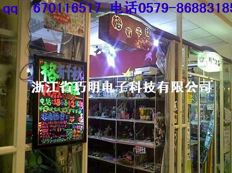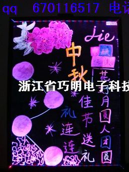 浙江东阳巧明电子科技有限公司是一家集研发 生产 销售生产LED手写荧光板、电子荧光板、手写荧光板、荧光板品批发三脚架 、LED发光礼品、LED荧光板配件等为一体的综合性企业。秉承“质量第一 用户至上 真诚务实 服务到家”的宗旨,把客户的满意始终作为我们奋斗的目标,把质量安全始终作为我们的使命。公司以先进的生产流程为依托,结合先进的互联网运营及管理模式。致力于为消费者提供款式新颖 做工精良的LED系列产品一站式服务 结合利用互联网降低运营成本及减少中间逐渐批渠道的双重优势。为合作伙伴提供品质优良和极具价格优势的产品,实质性的实现与合作伙伴的共赢,为合作双方长期稳定的发展打下结实基础。因公司对产品质量的严格控制。新颖潮流的设计风格 环保节能的产品理念 受到广大客户的一致认同