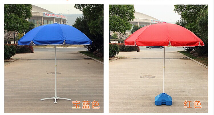 太阳伞布料颜色:太阳伞常有红、蓝、黄、绿、橙、黑、白等多种颜色,可按客户要求定做伞面颜色