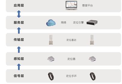 系统由定位手环、定位器、定位引擎、定位基站、管理平台等组成。