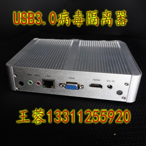 USB病毒隔离器就是来隔离不可信网络与内部网络,过滤USB移动存储上素材文件,防范病毒而研发的信息安全产品。它通过网络接口与内部网络连接,使用国际标准的网络协议来和PC主机连接。内置过滤软件,将常见的素材文件作为白名单格式,移动存储上所有的文件都将经过白名单比对检测后才能显示,操作拷贝进网。任何一台能连通网络的主机,无论WINOOWs还是苹果还是其他操作系统,都可以通过标准的ftp客户端或者浏览器来访问USB病毒隔离器上插入的移动存储的内容(也可以采用单机方式*。它能有效地防止usb移动存储上的文件携带病毒对于PC主机带来的威胁。