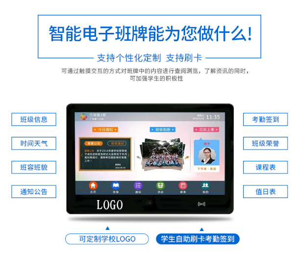 ①、班牌信息,电子班牌功能,避免学校每年更换班牌,直接通过软件设置即可完成。