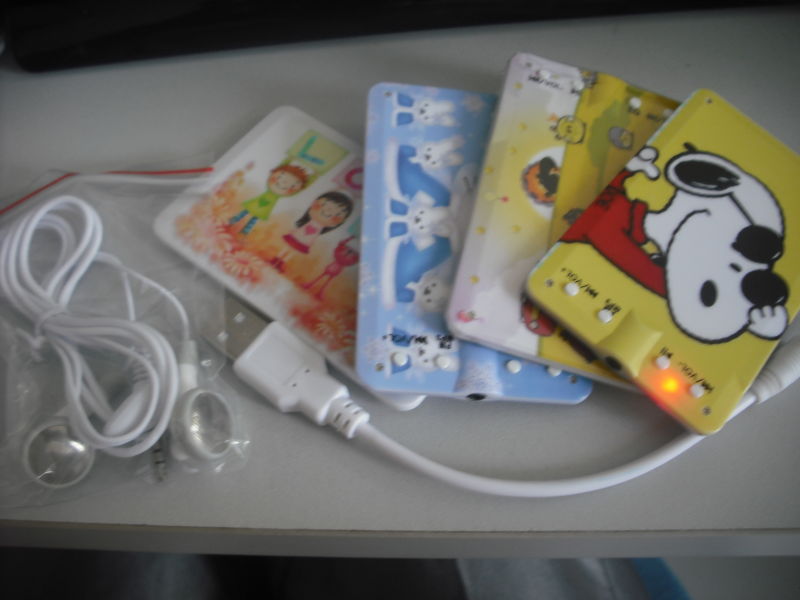 1.支持MP3、WMA、ASF,WAV.OGG等多种音频格式。 2.可双面印刷客户LOGO。 3电池容量90毫安,可播放5小时左右。 4.数据线,充电连接线,耳机统一插口。 5.产品尺寸:86*54*4(MM) 6铁盒包装,100个一箱,60*20*27(CM),重量:10KG 7.报价包含:耳机,数据线,包装,以及为客户印刷双面图案。 超薄名片机式MP3是一款USB2.0传输随身MP3,容量可供大量资料存取,同时可以聆听自己喜爱的美妙音乐。 * 闪存容量可支持64M—8GB。 * 使用3D彩色印刷技术. * 您可以拥有与人众不同的独特风格,喜欢的图案、人物、实物、企业LOGO,均可制作成具有特色独一无二的赠品.纪念品.宣传品等 产品体积小,外型设计名片化薄型化,为当前最薄的礼品MP3,可随身携带放进口代或皮夹中,使用方便,并可在任何个人计算机之间传输资料。 外观:3D立体彩色印刷 接口:高速USB2.0 容量:插卡 支持 TF卡 最长播放时间:8小时 耳机最大输出:>5mW(320hm) MP3比特率:8K bps-320K bps WMA/WAV比特率:64K bps-384K bps 信噪比:>85db 音乐格式:MP1、MP2、MP3、WMA、WAV 使用温度:-5 至 40摄氏度 所支持操作系统:WINOOWs98/ME/2000/XP/Vista、Mac 0s 9.0、Linux2.4.2 规格: 重量(单机):23g 重量(整机):92g 产品尺寸:86*54*4mm 可以印刷名片/广告/形象等图,礼品最佳选择 可以印刷你自己的图片,留下最美丽时刻。 用于商务礼品,展会礼品,电子礼品,会议礼品,员工福利礼品,并代理客户在礼品上印刷上公司名字,LOGO,电话,广告语等宣传资料 我们拥有专业制作全套名片MP3/名片U盘生产工厂,专业制作各种用途U盘,容量自定!