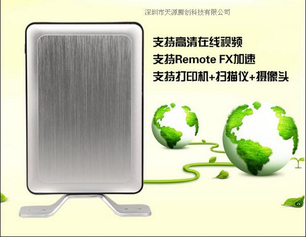 ARM架构Cortex Quad A9 8核CPU 1.2GHZ,1GB内存,8GB Flash存储,Graphics Card Type显示芯片,嵌入式Linux操作系统,3.4内核,支持RDP7.0 RDP8.0 RDP8.1版本,支持win7/8/10/2012等系统、1*HDMI接口加1*VGA接口可支持双屏同显,1080P高清分辨率显示;支持USB重定向,可扩展WIFI,5W-7W功耗。土豪金,银色可选,铝合金材质。支持hyper-v的RDP云终端机腾创TC-T2500N。