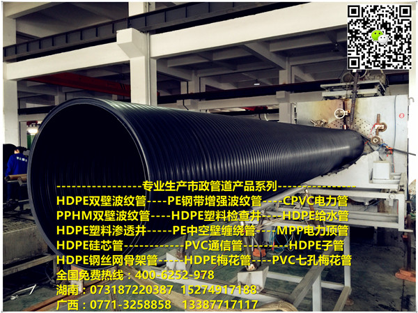 产品系列关键字:HDPE双壁波纹管,HDPE钢带增强螺旋波纹管,HDPE中空壁缠绕管,HDPE给水管,PVC通信管,多孔梅花管,CPVC高压电力套管,塑钢缠绕管排水管,HDPE子管