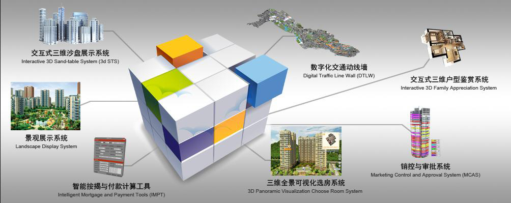 “IPAD 3D互动售楼宝”又名ipad售楼系统(IPAD售楼宝),承载载体为IPAD设备,主要应用于房地产售楼展厅一对一展示、移动式展示。“IPAD售楼宝” 是一套集合了“360°旋转功能”、“720°全景功能”、“动态特效”、“三维动画”多种功能于一体的IPAD三维展示方案。“IPAD售楼宝”主要应用于房地产虚拟展示,该系统综合展示了一个房地产项目各大主要模块内容,包括:电子楼书、区位配套、园林景观、户型鉴赏、宣传片、按揭计算器、等多种功能于一体的数字展示系统。