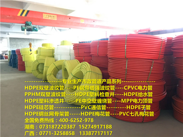 产品系列关键字:HDPE双壁波纹管,HDPE钢带增强螺旋波纹管,HDPE中空壁缠绕管,HDPE给水管,PVC通信管,多孔梅花管,CPVC高压电力套管,塑钢缠绕管排水管,HDPE子管