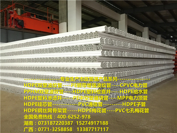 产品系列关键字:HDPE双壁波纹管,HDPE钢带增强螺旋波纹管,HDPE中空壁缠绕管,HDPE给水管,PVC通信管,多孔梅花管,CPVC高压电力套管,塑钢缠绕管排水管,HDPE子管